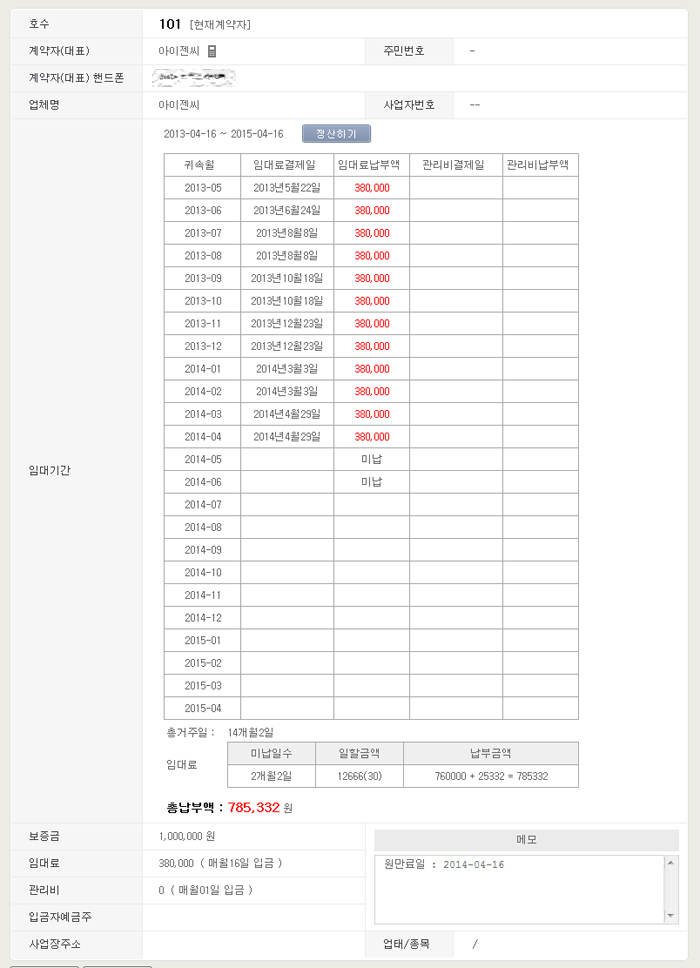 | 버튼 한번의 클릭으로 임대료를 정산하여 임차인의 납부액을 정확히 계산해 줍니다. |